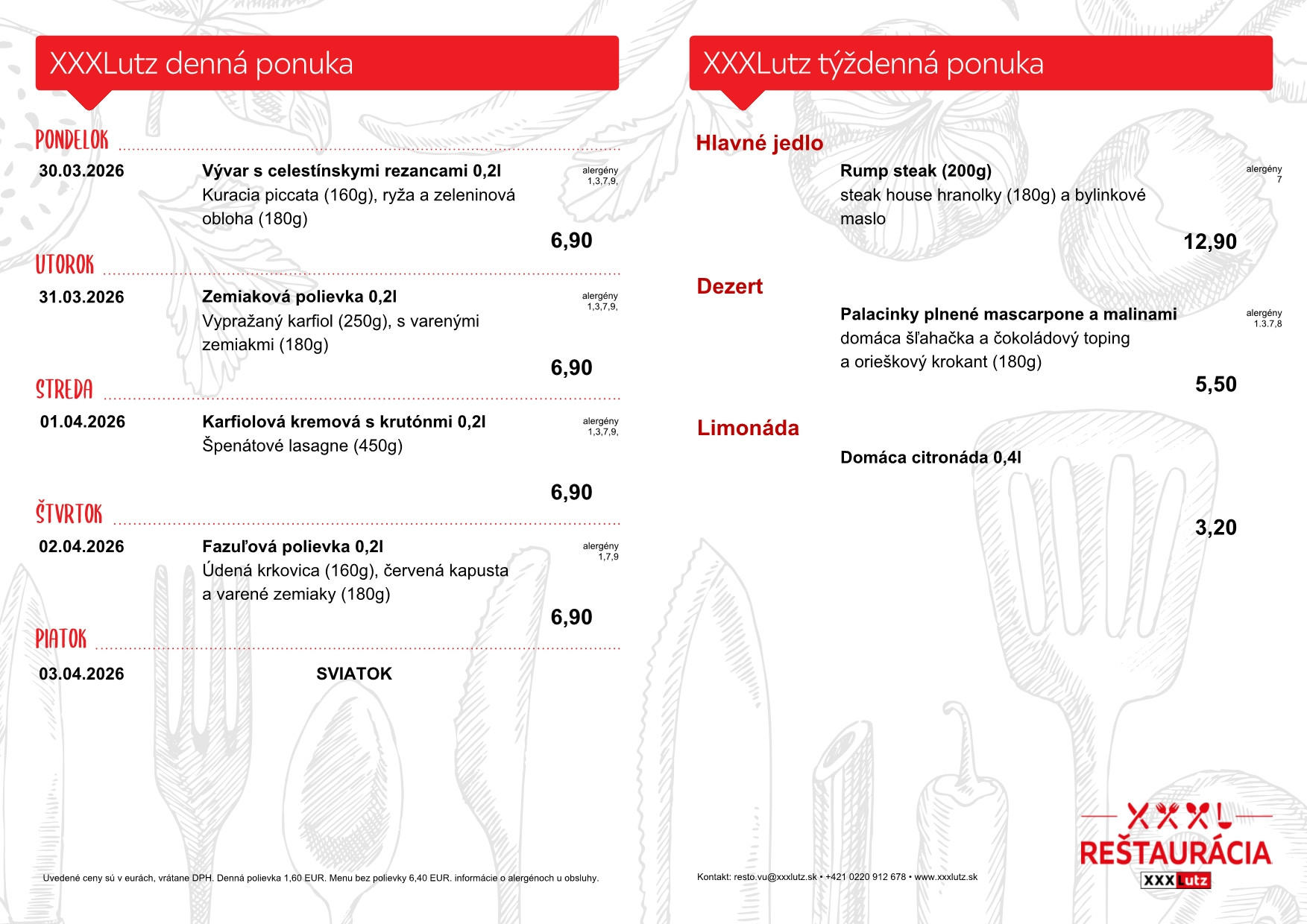 Aktuálna týždenná a denná ponuka reštaurácií XXXLutz