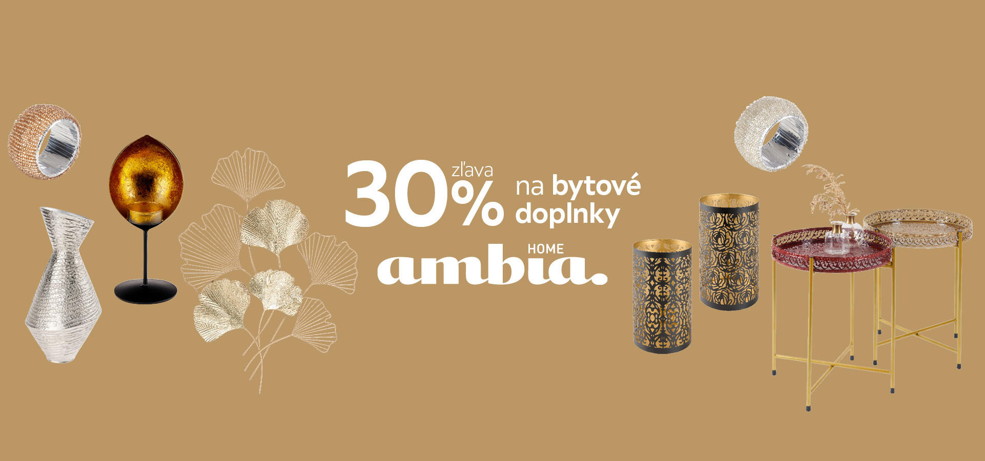 Túžite po bývaní, ktoré je plné elegancie, šarmu a výnimočnosti? Potom ste na správnej adrese so značkou Ambia Home. Navyše aktuálne s neodolateľnou zľavou až 30 %! Svoju domácnosť doladíte do dokonalosti originálnymi doplnkami a vnesiete tak interiéru punc individuality. Inšpirujte sa a objavte unikátne bytové doplnky, originálne dekorácie a svietidlá rôznych typov. Ambia Home vám pomôže rozžiariť domov príjemnými svetelnými tónmi pre pocit pohody, útulnosti a bezpečia. Dekorácie od Ambia Home sú známe svojou nápaditosťou a veľkou rozmanitosťou: od lampášov, sviečok, váz, cez hodiny, figúrky, sošky, až po dekoračné nápisy a ďalšie dekorácie. Nechajte sa očariť jedinečným dizajnom, nápaditými doplnkami a veľkou rozmanitosťou značky Ambia Home a využite zľavu 30 % práve teraz!