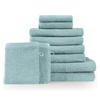 - Kompletné sady: K dispozícii sú všetky veľkosti – umývacie žinky (15x20 cm), uteráky (50x100 cm), osušky (70x140 cm) aj veľké saunové osušky (80x200 cm).