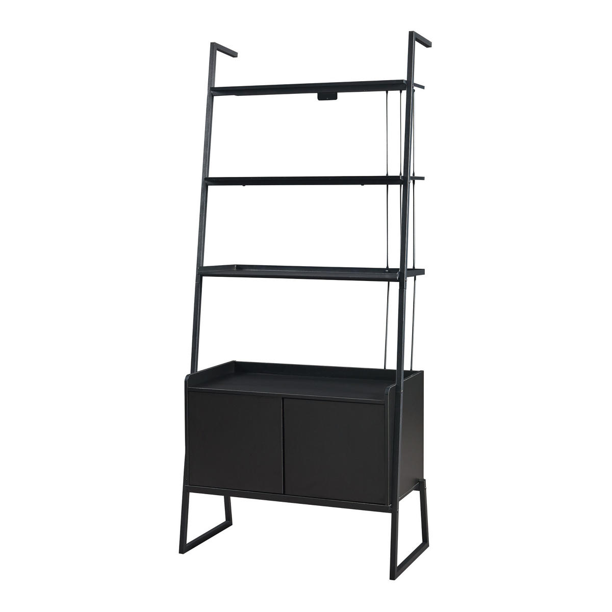 Táto elegantná rebríková polica spája funkčnosť s moderným dizajnom a slúži ako štýlové riešenie na ukladanie a vystavovanie rôznych predmetov. Vďaka štyrom priestranným policiam a spodnej skrinke poskytuje dostatok priestoru na všetky druhy predmetov. Poličky rebríkového regálu sú ideálne na štýlové vystavenie rastlín, obrazov alebo dekorácií. Otvorený dizajn umožňuje všestranné využitie a uľahčuje zvýraznenie vašich obľúbených kúskov. Šatníková skriňa má dvoje dverí, ktoré sa dajú otvoriť ľahkým zatlačením vďaka technológii push-to-open. Vnútro skrine ponúka ďalší úložný priestor na knihy, DVD alebo dokumenty.