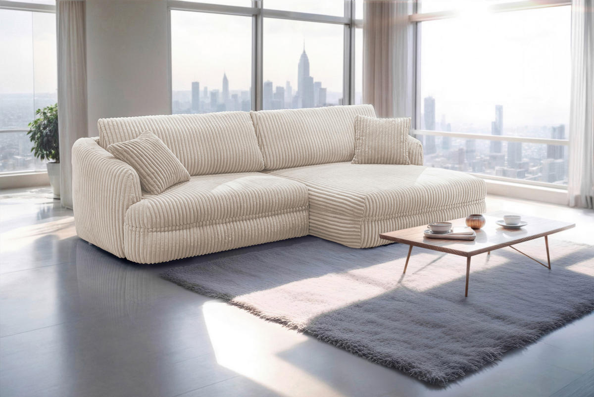Vytvorte si pokojné útočisko vo vašej obývačke: Rohová sedačka v krémovej farbe sa postará o príjemné chvíle oddychu.