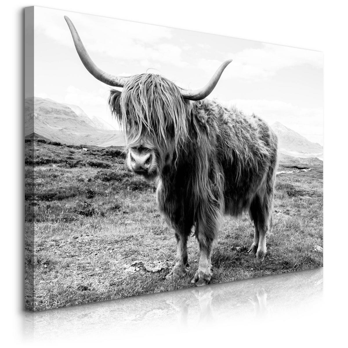 OBRAZ NA PLÁTNE Pre Obývačku Škótska Krava Zviera Príroda 3D 40 x 30 cm - čierna/sivá, textil (40/30cm) - Muralo