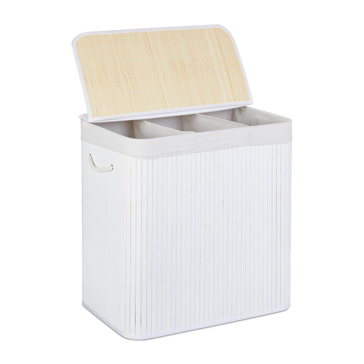 S dekoratívnym bambusovým rozdeľovačom bielizne je triedenie bielizne hračkou. V troch priehradkách môžete rozdeliť špinavú bielizeň na svetlú, tmavú a farebnú, čím zabráňte nevzhľadnému zafarbeniu počas prania. Vyrobený z prírodného bambusu, tento rozdeľovač je ideálnym pomocníkom do vlhkých miestností. Vďaka veku je vaša špinavá bielizeň diskrétne a bez zápachu uložená. Pri potrebe ho môžete ľahko zložiť a uskladniť.