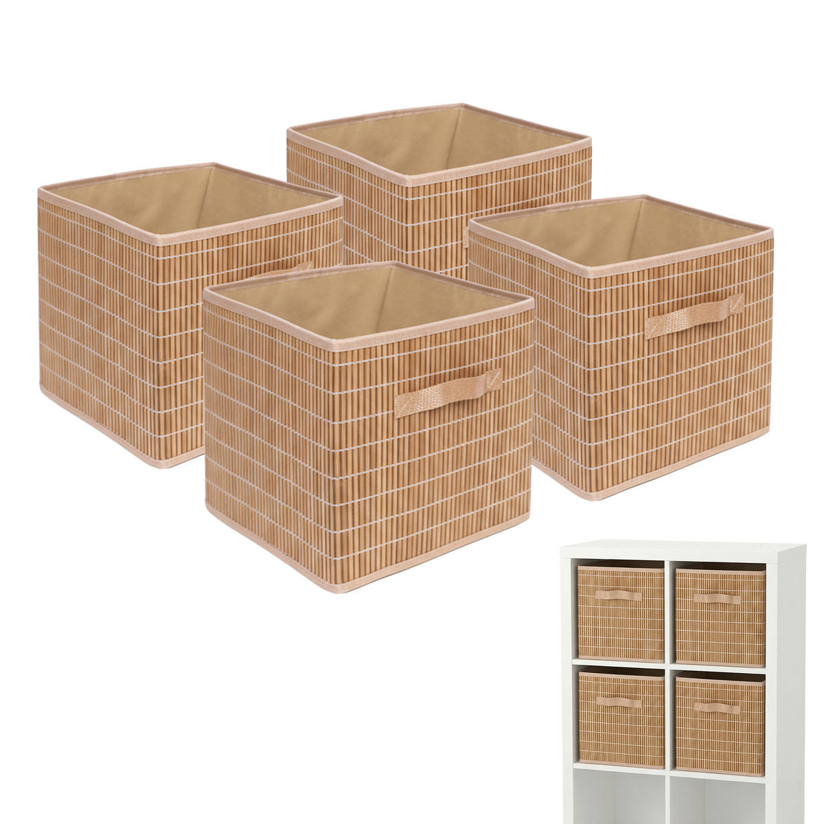 S týmito bambusovými košmi do regálov vnesieš do svojho domova poriadok a prirodzenú útulnosť. Praktická sada ti pomôže prehľadne usporiadať hračky, mediálne príslušenstvo alebo iné každodenné predmety. Úložné koše z prírodného bambusu vytvárajú príjemnú atmosféru a hodia sa do kockových regálov aj do mnohých iných skríň. Vďaka pútku ich pohodlne vytiahneš, a keď ich nepotrebuješ, dajú sa zložiť a šetria miesto.