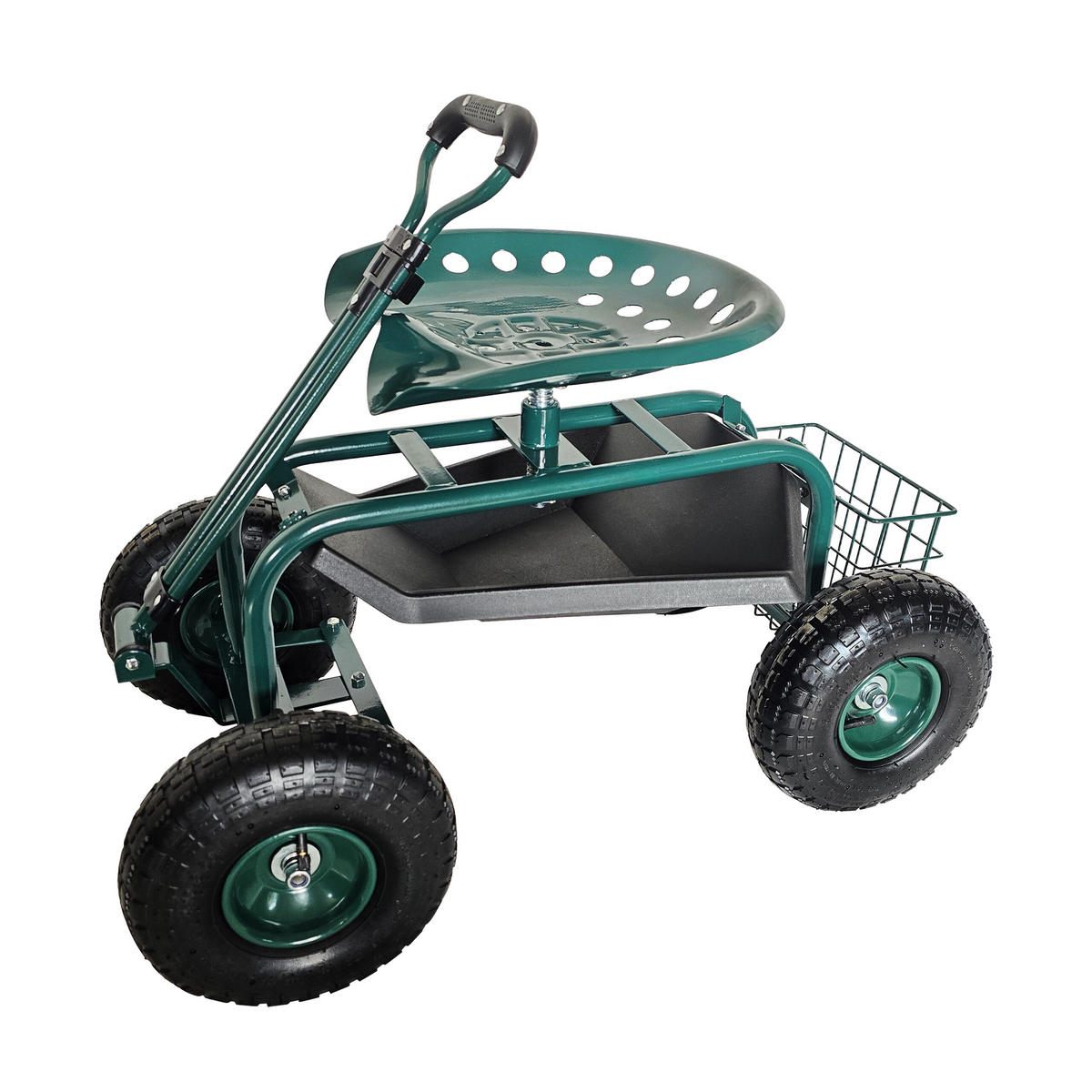 Či už sadiť kvety, pletie buriny alebo zbierať zeleninu – toto praktické pojazdné záhradné sedadlo umožňuje pohodlnú prácu v sede. Vďaka nastaviteľnej výške sedadla sa prispôsobí vašim potrebám. Robustný oceľový rám zaisťuje stabilitu a vzduchom plnené kolesá umožňujú ľahké presúvanie po rôznych povrchoch. Odkladací priestor pod sedadlom a košík poskytujú miesto na náradie a ďalšie pomôcky.