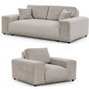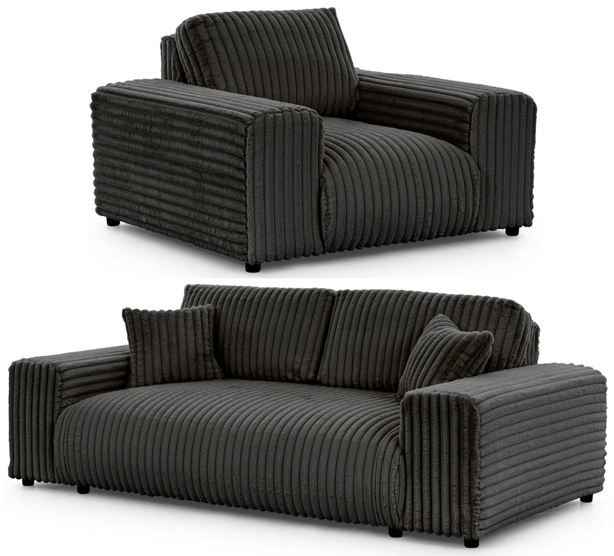 3-miestna pohovka a kreslo sú potiahnuté luxusnou látkou Plüschcord, známou svojou mäkkosťou a príjemnou textúrou, ktorá poskytuje výnimočný komfort sedenia. Sú vyrobené z vysokokvalitných materiálov a vybavené odolnými vlnovými pružinami, vďaka čomu zaručujú vynikajúcu stabilitu, dlhodobú životnosť a optimálne pohodlie.