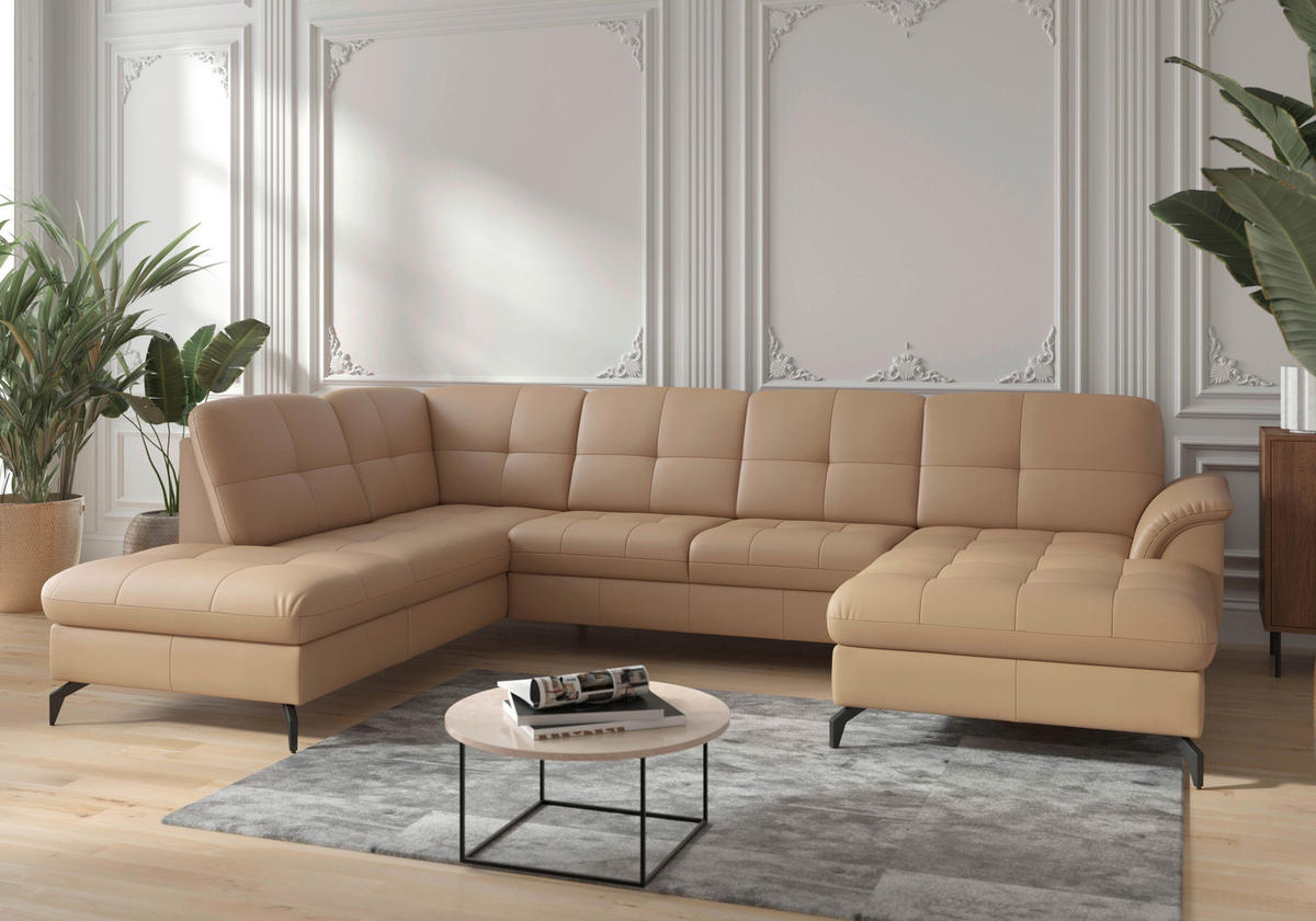 ROHOVÁ SEDAČKA, koža, cappuccino - čierna/cappuccino, Modern, kov/koža (212/244cm) - Sit & More