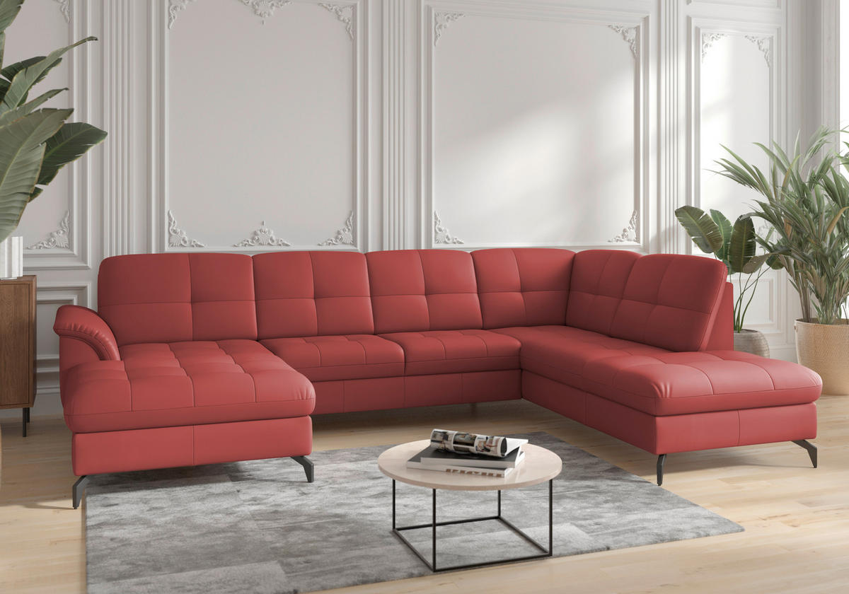 ROHOVÁ SEDAČKA, koža, červená - čierna/červená, Modern, kov/koža (212/244cm) - Sit & More