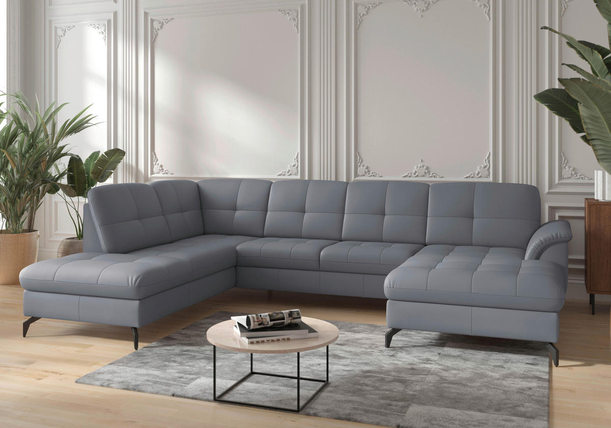 ROHOVÁ SEDAČKA, koža, sivomodrá - čierna/sivomodrá, Modern, kov/koža (212/244cm) - Sit & More