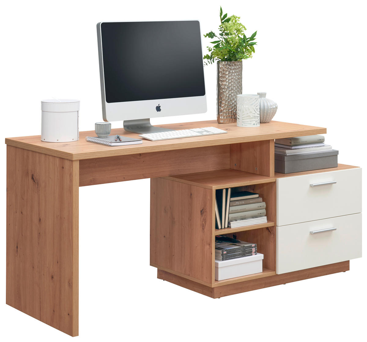 PÍSACÍ STÔL, biela, dub artisan, 166/65/75 cm